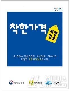 한편 ‘착한가격업소’는 가격, 위생·청결, 공공성 등을 고려해 행정안전부와 여수시가 지정한 업소로 여수시에는 100개소가 지정됐다.