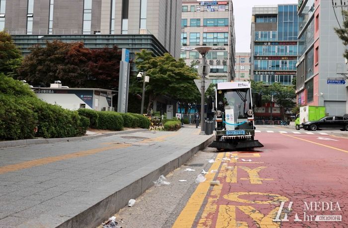 미디어아워 이호민 기자 | 용인특례시가 시민 생활의 편의를 돕기 위해 도입한 소형 전기노면청소차들이 골목길과 상가 주변도로에서 맹활약하고 있다.