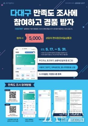 미디어아워 김성연 기자 | 대구광역시는 5월 17일 오전 9시부터 통합로그인·간편인증 시스템인 ‘다대구’앱 만족도조사에 참여하는 회원 500명에게 편의점 상품권을 지급한다.
