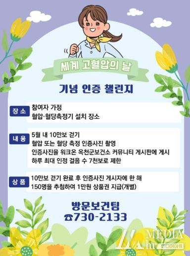 미디어아워 조연정 기자 | 옥천군 보건소는 세계 고혈압의 날(5월 17일)을 맞아 5월 한 달간‘자기혈관 숫자알기’인증 챌린지를 운영한다.