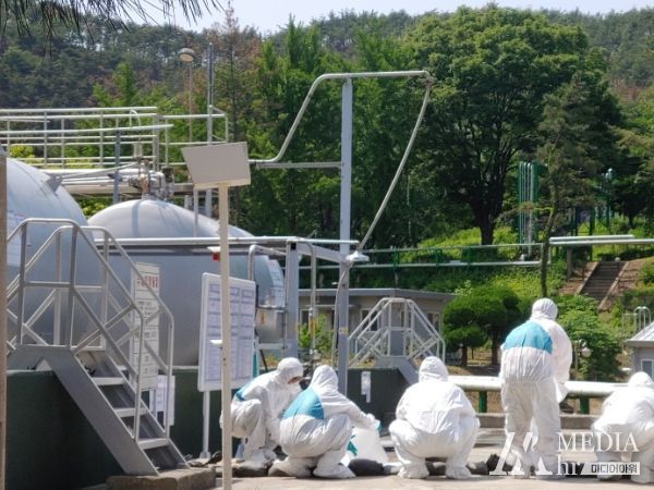 미디어아워 조연정 기자 | 경주시는 지난 15일 ㈜풍산 안강공장에서 유해화학물질 누출사고 대응 유관기관 합동훈련을 가졌다.