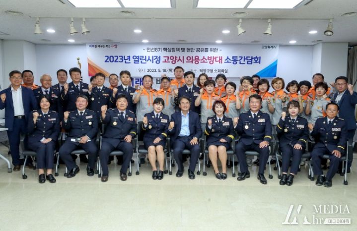 미디어아워 진금하 기자 | 고양특례시는 18일(목) 오후 덕양구청 소회의실에서 지역 의용소방대원 40여 명과 소통 간담회를 가졌다.