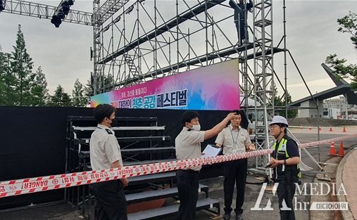 주요 점검 내용은 임시 설치 시설물 전도 예방 조치, 소화기 비치, 미규격 전선 사용 제한, 안전관리요원 배치, 비상 대피로 확보와 질서유지, 교통대책 등 안전사고 위험요인 관리 여부 등이다.