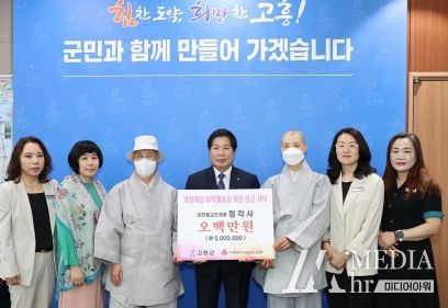 미디어아워 김성연 기자 | 고흥군은 지난 5월 22일 대한불교조계종 정각사(주지 정암)에서 가정의 달을 맞아 관내 소외계층을 위해 사용해 달라며 이웃사랑 성금을 기탁했다고 밝혔다.