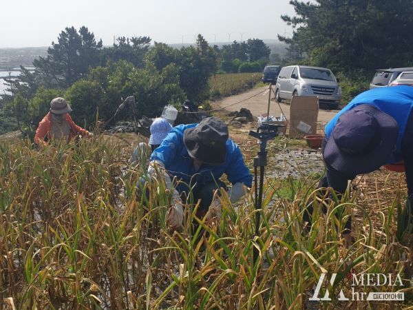 미디어아워 김성연 기자 | 제주특별자치도 농축산식품국은 23일 마늘수확이 한창인 조천읍 북촌리 고령농가를 찾아 마늘수확 일손돕기를 진행했다.