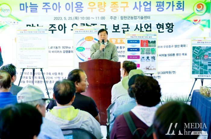 미디어아워 이호민 기자 | 합천군은 25일 합천군동부마늘주아단지(적중면 부수리 소재)에서 마늘 주아 종구 보급사업 평가회를 가졌다.