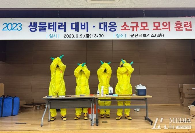 미디어아워 기자 | 군산시 보건소는 9일 전라북도 감염병관리과, 군산경찰서, 군산소방서 등 유관기관 관계자 50명이 참석하는 ‘생물테러 대비·대응 모의훈련’을 실시했다고 밝혔다.