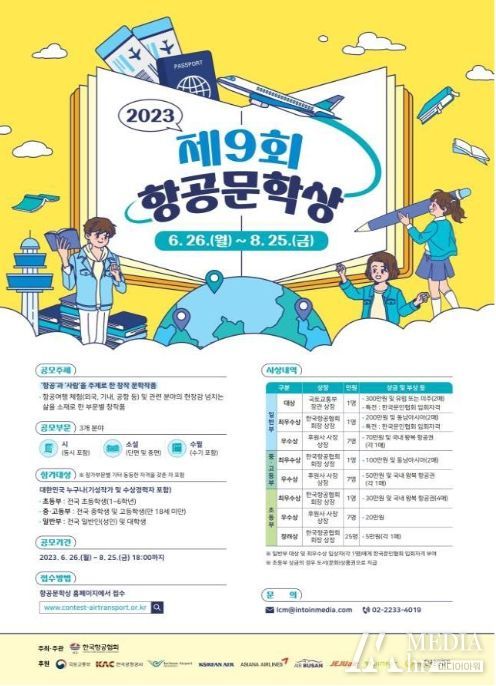 미디어아워 기자 | 국토교통부와 한국항공협회(회장 윤형중)는 6월 26일부터 8월 25일까지 ‘제9회 항공문학상’ 공모전을 개최한다.