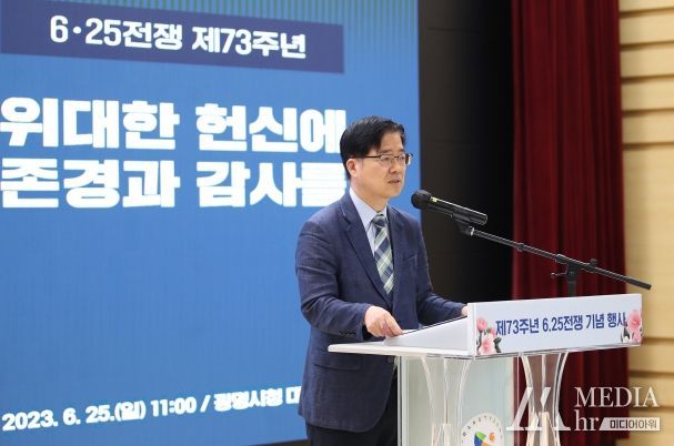 미디어아워 기자 | 광명시는 6.25 전쟁의 호국영령과 참전용사들의 숭고한 희생정신을 기리기 위한 제73주년 기념행사를 25일 시청 대회의실에서 국가유공자 등 100여 명이 참석한 가운데 개최했다.