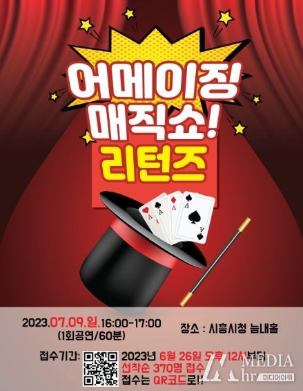 미디어아워 기자 | 시흥시는 엠에프컴퍼니의 주관으로 오는 7월 9일 16시 시청 늠내홀에서 ‘어메이징 매직쇼! 리턴즈’ 공연을 개최한다.