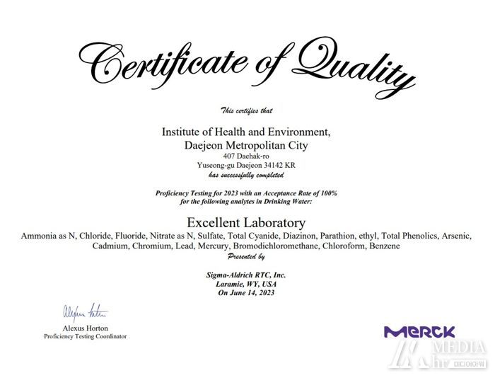 미디어아워 기자 | 대전보건환경연구원이 국제 우수 분석기관으로 인증 받았다.