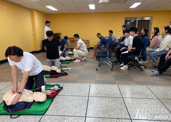 미디어아워 기자 | (재)김해문화재단은 임직원들의 응급처치능력 향상을 위한 ‘심폐소생술(CPR) 및 자동제세동기(AED)’ 교육을 실시했다고 밝혔다.