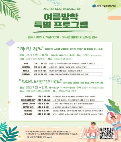 서재흥 원주시립중앙도서관장은 “이번 프로그램을 통해 어린이와 청소년들이 독서에 흥미를 붙이고 환경 감수성을 키워 의미 있는 여름방학을 보내길 바란다.”라고 전했다.