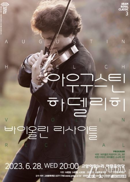 미디어아워 기자 | 고양문화재단은 '2023 아람 로열 클래식 시리즈' 세 번째 공연으로 오는 2023년 6월 28일(수) 고양아람누리 아람음악당에서 '아우구스틴 하델리히 바이올린 리사이틀'을 개최한다고 밝혔다. 이번 공연은 2017년 서울시립교향악단 협연으로 국내 관객들을 만나온 그가 국내에서 처음 선보이는 솔로 무대이다.