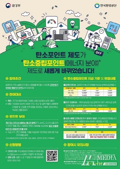 탄소중립포인트제는 전기, 상수도, 도시가스의 사용량을 절감하고 감축률에 따라 탄소중립포인트를 부여하는 온실가스 감축 실천 제도다. 올해 3월 탄소중립포인트제 규정 제정에 따라 제도 명칭이 탄소포인트제에서 탄소중립포인트(에너지분야)로 변경됐다.