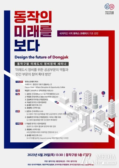 미디어아워 기자 | 동작구는 오는 29일 오후 1시 30분 구청 대강당에서 미래도시로의 발전전략을 모색하는 ‘동작구형 미래도시 정비정책 세미나’를 실시한다고 밝혔다.