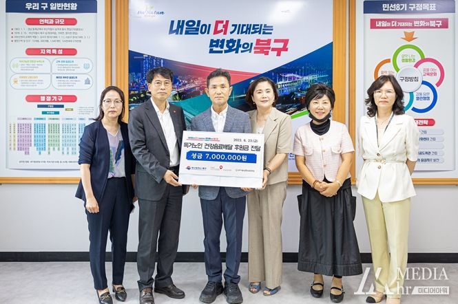 미디어아워 기자 | 부산 북구는 23일 국민건강보험공단 부산울산경남지역본부가 구청을 방문하여 ‘독거노인 사랑의 건강음료 배달사업’에 사용해달라며 후원금 700만 원을 전달했다고 밝혔다.