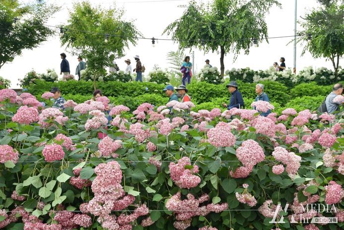 전국 각지에서 몰려든 관람객들은 애나멜수국, 앤드리스썸머, 핑크아나벨 등 22종 1만 6천여 본, 20만 송이의 수국이 화려하게 펼치는 색채향연에 눈을 떼지 못했다.