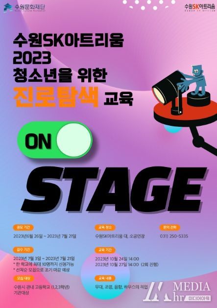 미디어아워 기자 | 수원문화재단은 7월 21일까지 ‘무대기술 아카데미 청소년을 위한 'ON-STAGE 진로탐색'’ 교육생을 모집한다.