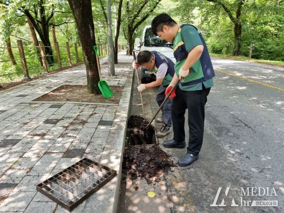 이번 점검에서는 매년 반복적으로 침수되는 저지대 구간, 주요 도로변과 취·정수장 등 관할 시설물을 포함하여 70여 개소를 중점적으로 추진했으며, 침수의 주원인이 되는 담배꽁초, 낙엽 등 퇴적물을 제거하고 유수 흐름에 지장이 없도록 준설 작업을 실시했다.