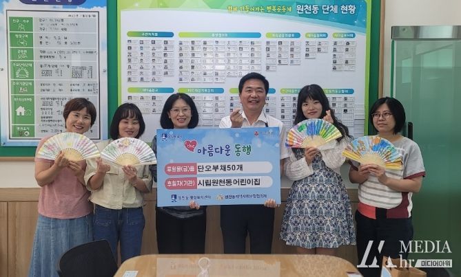 미디어아워 기자 | 수원시 영통구 원천동행정복지센터는 지난 23일 시립원천동어린이집의 이미선 원장과 어린이집원생들이 직접 만든 단오부채 50개를 지역사회의 경로당 어르신들을 위해 기부했다고 밝혔다.