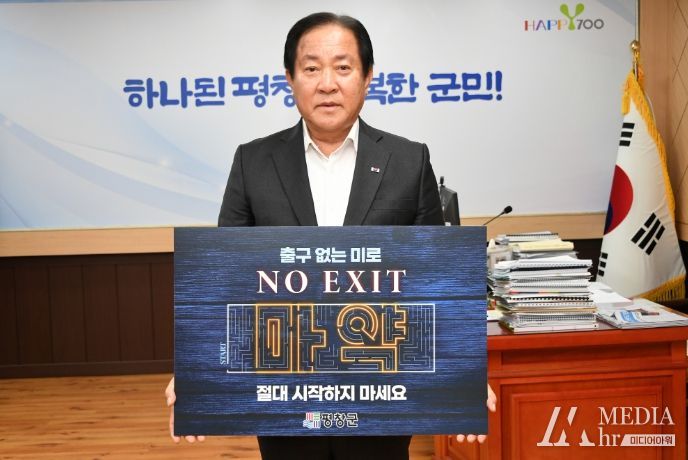 미디어아워 기자 | 심재국 평창군수는 6월 26일,‘세계 마약퇴치의 날'을 맞아 마약범죄 예방 및 마약에 대한 경각심 고취를 위한‘노 엑시트(NO EXIT)' 릴레이 캠페인에 동참했다.