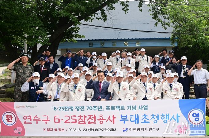 미디어아워 기자 | 인천시 연수구는 23일 6·25전쟁 정전 70주년을 맞아 지역 내 6·25참전용사와 보훈단체 지회장 등 80여 명을 대상으로 부대초청행사를 열었다.