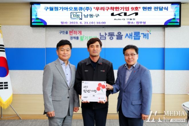미디어아워 기자 | 인천시 남동구는 최근 남동구 구월1동 소재 구월점기아오토큐(주)를 ‘우리 구 착한기업’ 9호로 선정하고 착한기업 현판을 전달했다고 26일 밝혔다.