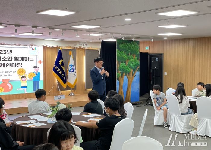미디어아워 기자 | 사천상공회의소는 지난 24일 사천시청 대회의실에서 박동식 사천시장, 사천지역 초등학생과 학부모 100여명이 참석한 가운데 ‘2023 가족경제한마당’을 개최했다.