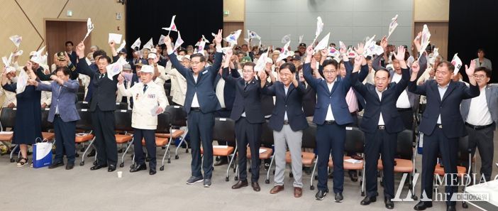 그리고 김영조 상이군경회 함양군지회장의 선창으로 참석자 모두가 소형 태극기를 들고 만세삼창을 하며 마무리됐다.