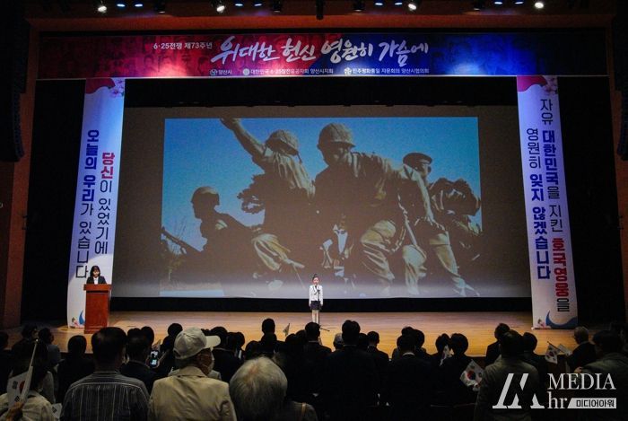 미디어아워 기자 | 양산시는 지난 25일 양산문화예술회관 대공연장에서 6.25참전유공자 및 보훈가족, 국회의원, 도·시의원, 기관·단체장 등 350여명이 참석한 가운데 6.25전쟁 제73주년 행사를 개최했다.