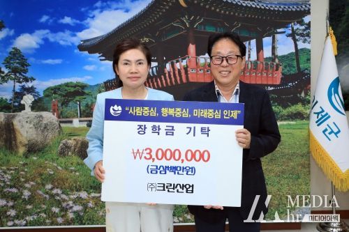 미디어아워 기자 | 주식회사 크린산업에서는 지난 6월 26일 인제군청을 방문해 지역 인재양성을 위한 장함금 300만원을 기탁했다.