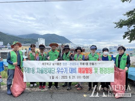 미디어아워 기자 | 사상구 주례1동 지역자율방재단은 지난 21일 여름철 우수기를 앞두고 안전, 건강 주례1동을 만들기 위해 재해우려지역에 대한 예찰활동을 실시했다.