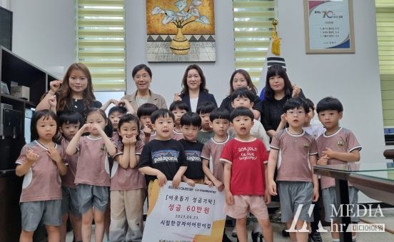미디어아워 기자 | 시립한강자이어린이집 7세 반 원아들이 23일 김포본동 행정복지센터를 찾아 어려운 이웃을 위해 바자회 수익금 60만 원을 기부했다.