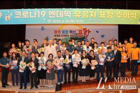 미디어아워 기자 | 포항시는 코로나19 엔데믹 선언을 기념해 26일 평생학습원 대강당에서 유공자 150여 명에게 표창을 수여했다.