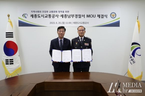미디어아워 기자 | 세종도시교통공사는 6월 26일 세종남부경찰서(서장 박성갑)와 건강한 교통문화 정착을 위한 업무협약을 맺었다고 밝혔다.