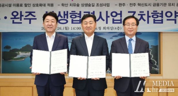 미디어아워 기자 | 전북도와 전주시, 완주군이 함께 추진하고 있는 상생협력 사업이 상생의 보폭을 지속적으로 넓혀가고 있다. 지난 5월 6차 협약 후 한 달만에 세 가지 사업을 추가 추진하기로 한 것이다.