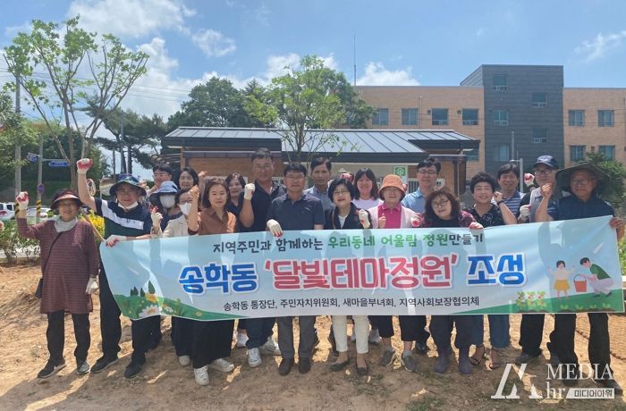 달빛테마정원은 물망초경로당 앞 유휴부지를 활용하여 주민들이 힐링할 수 있는 공간을 만들고자 송학동 통장단, 주민자치위원, 부녀회 및 사회보장협의체 등 지역주민 40여명의 참여로 조성됐다.