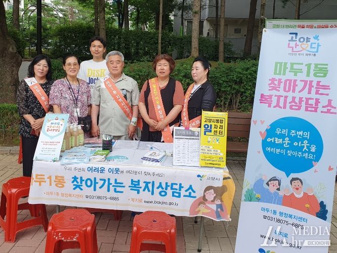 미디어아워 기자 | 고양특례시 마두1동 행정복지센터는는 지난 6월 27일 지역주민들에게 다양한 복지정보를 제공하고 복지사각지대를 발굴하기 위해 백마공원 일대에서‘찾아가는 복지상담소’를 운영했다.