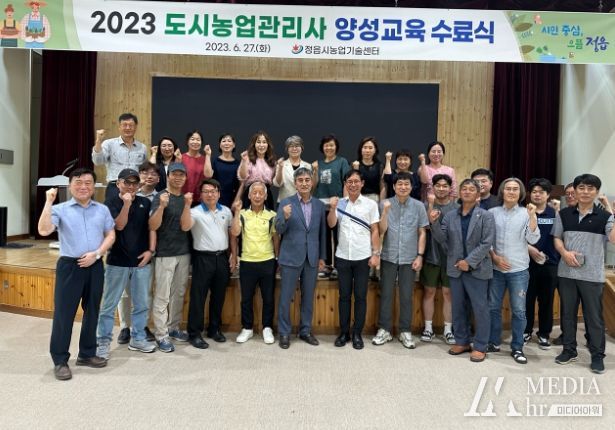 정읍시농업기술센터(소장 전정기)는 지난 27일 제2청사 대강당에서 ‘2023년 도시농업 관리사 양성과정’ 수료식을 열고, 도시농업 관련 전문지식 과정을 이수한 교육생들에게 수료증을 전달했다.
