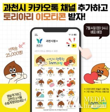 미디어아워 기자 | 과천시는 공식 마스코트인 ‘토리’와 ‘아리’ 캐릭터를 이모티콘으로 제작해 7월 4일 오후 2시부터 시 공식 카카오톡 채널을 통해 무료로 배포하는 이벤트를 진행한다.