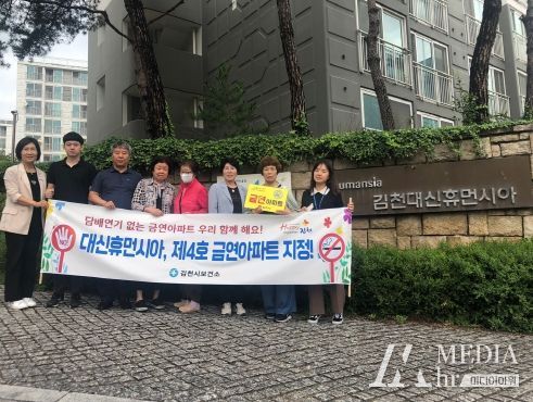 미디어아워 기자 | 김천시보건소는 간접흡연의 해로운 환경으로부터 시민의 건강을 보호하고자 지난 6월 15일 김천대신휴먼시아, 아포덕일한마음아파트를 금연 아파트로 지정하고 현판식을 했다.