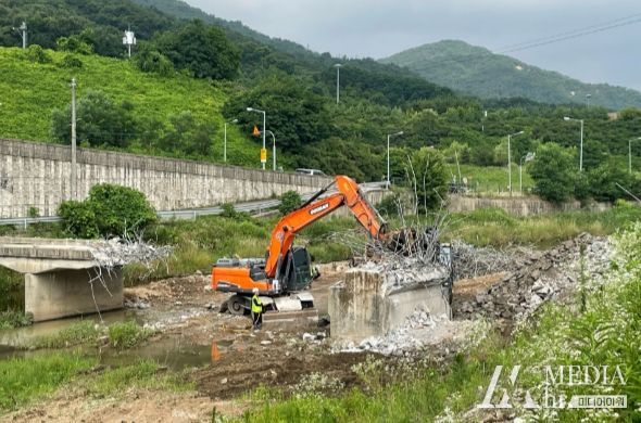 미디어아워 기자 | 남양주시는 지난 26일 ‘용암천(번영교 일원) 지방 하천 정비 사업’의 일환으로, 별내면 광전리에 위치한 (구)번영교 철거 작업을 시작했다.