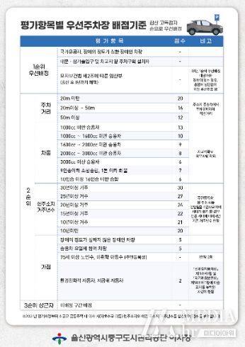 울산광역시중구도시관리공단은 배점 기준에 따라 점수를 합산한 뒤 고득점자 순으로 주차 공간을 배정할 예정이다.