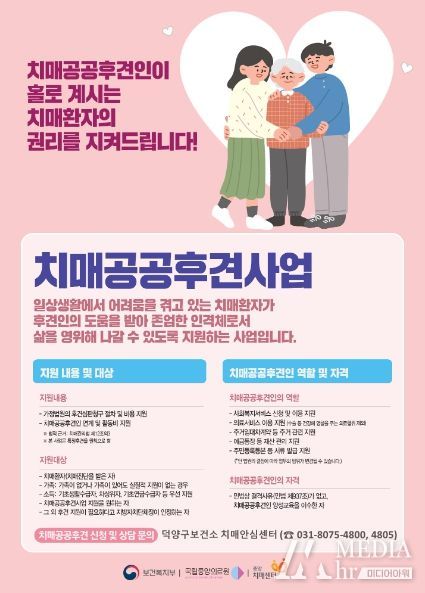 미디어아워 기자 | 고양특례시 덕양구보건소 치매안심센터는 의사결정 능력 저하로 어려움을 겪는 치매환자를 대상으로 치매공공후견인을 선임하여 인간 존엄성을 보장하기 위한 ‘치매공공후견사업’을 운영한다.