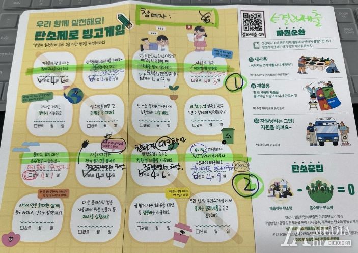일반 시민이 참여하는 ‘탄소제로 빙고게임’은 탄소중립에 관한 정보와 일상 속 실천할 수 있는 목록 16가지를 담은 리플릿을 제작해 관내 유관기관 및 어린이집 등 16개 기관과 탄소중립 관련 행사에 참여한 시민들 1,300여 명에게 배포했다. 스스로 탄소중립을 실천할 수 있는 기회를 제공하여 많은 참여와 큰 호응을 이끌었다.