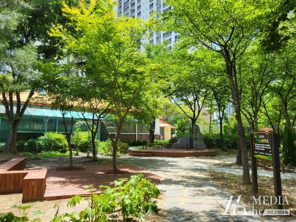구청에 따르면 앞서 공모를 통해 신청을 받은 계성초등학교와 ‘2023년 명상숲 조성사업을 위한 협약’을 체결하고 식재 및 시설물 설치 등의 방향에 대한 협의를 거쳐 실시설계 용역을 완료했으며 지난 4월 공사를 시작해 6월 초 준공했다.