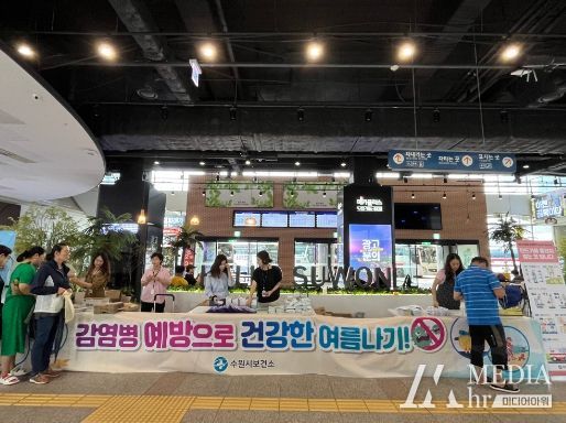 미디어아워 이다정 기자 | 수원시보건소가 18일 수원버스터미널 대합실에서 ‘건강한 여름나기를 위한 감염병 예방 캠페인’을 펼쳤다.
