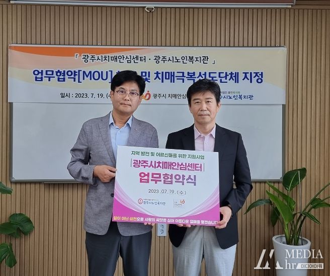 미디어아워 이다정 기자 | 광주시 보건소(치매안심센터)는 19일 광주시 노인복지관을 치매극복선도단체로 지정하고 지역사회 치매친화적 환경 조성을 위한 업무협약을 체결했다.