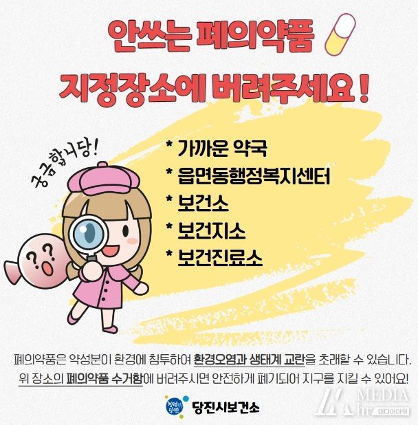 미디어아워 이다정 기자 | 당진시보건소가 생태계 교란 등 환경오염을 일으킬 수 있는 폐의약품의 적절한 처리를 당부했다.